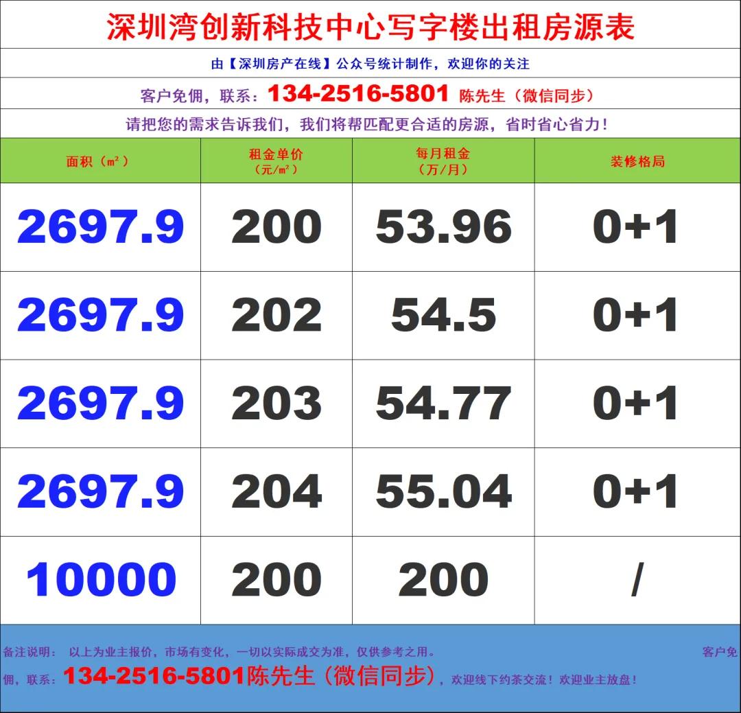 深圳湾创新科技中心的写字楼租赁信息如下: